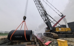 玉林干线和玉林城区支线共槽段应急供水工程首节PCCP管顺利吊装
