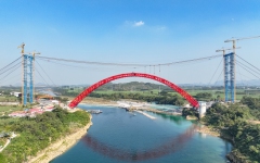 来宾西秀滩红水河特大桥全桥拱肋管内混凝土灌注施工顺利完成
