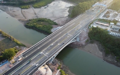 防城港国门大道项目黄竹江大桥顺利完成沥青摊铺施工