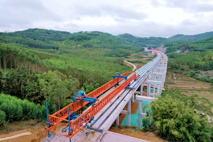 塘村2号高架大桥位于合山市岭南镇塘村,全长689米,共计17跨。该桥邻近村落住宅,人员流动密集,所经农田众多,征拆协调难度大,同时,该桥存在一定的弯度、坡度,为桥梁施工增加了难度。