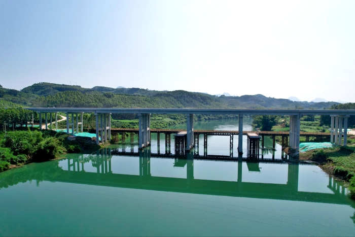 此次架通的六峒中桥位于主线K14+953段,为先简支后连续结构,左幅桥长68米,共计2跨,架设30米T梁10片。项目桩号K0+000至k45+441.322段全长约45.441公里的半幅路线顺利实现畅通连接的目标。此次阶段性胜利有效疏通了项目材料运输路线,缓解了运输压力,打开了项目全线施工建设的新局面,为下一步项目全线贯通奠定了扎实基础。(路面分公司 姚忠俊 文/图)