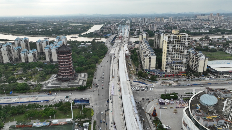 金海湾大桥为主跨191m的下承式钢管混凝土系杆拱桥,全长1274.6m,11月5日实现主线左幅贯通;南珠大街跨江桥为主跨185m的中承式钢管混凝土提篮拱桥,全长936m,11月10日完成主线全幅贯通。两座桥梁均涉及预制箱梁、钢混组合梁等多类型梁体架设,施工技术要求高、协调难度大。