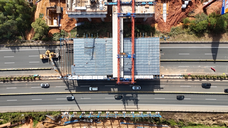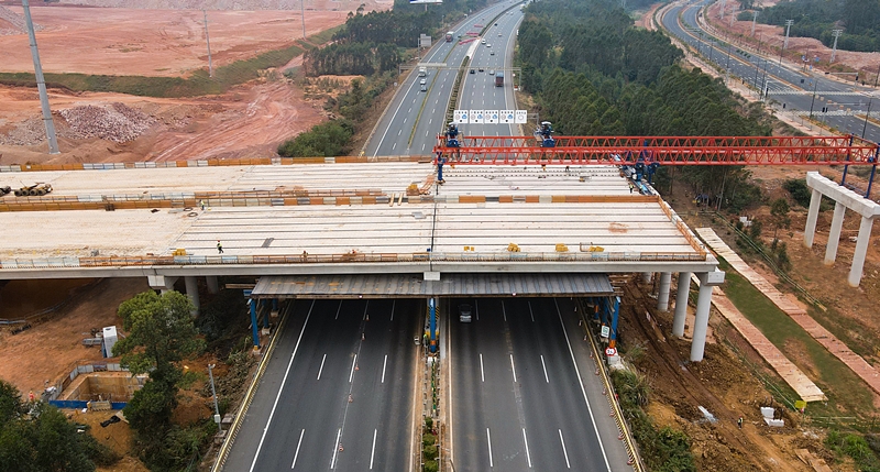 12月11日,南宁伶俐江南11号路上跨高速路工程建设取得关键进展——上跨高速段的32片预制梁精准架设完毕,项目实现重要节点突破。