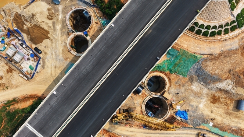 该管段与鹿寨至钦州港高速公路交叉,输水管线需从在建的鹿寨至钦州港高速公路桥梁下方穿越。但施工区域地质条件复杂,地层上部为厚达10米的强风化粉砂岩,岩体极度破碎,下部则为裂隙较发育的残中风化粉砂岩,自稳能力差。为保障桥梁桩基在施工过程中不受扰动,项目决定以双管穿越方式开展顶管施工。