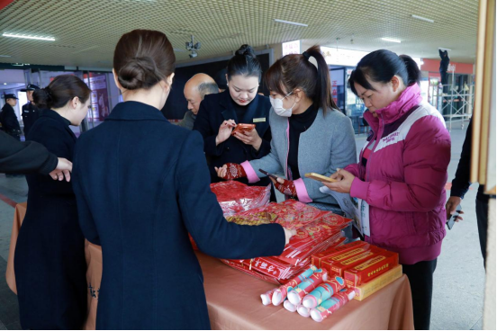 在志愿服务台前,志愿者们热情地为过往旅客赠送春联、福字、围巾、矿泉水等暖冬物资,耐心提供购票引导、行李搬运、重点旅客帮扶等便民服务。“这围巾真暖和,谢谢你们!”“没想到刚出站就收到春联,回家正好贴上!”一句句贴心的问候,一次次主动的伸手,获得旅客们连连称赞,让寒冷的春运旅途充满了温情。